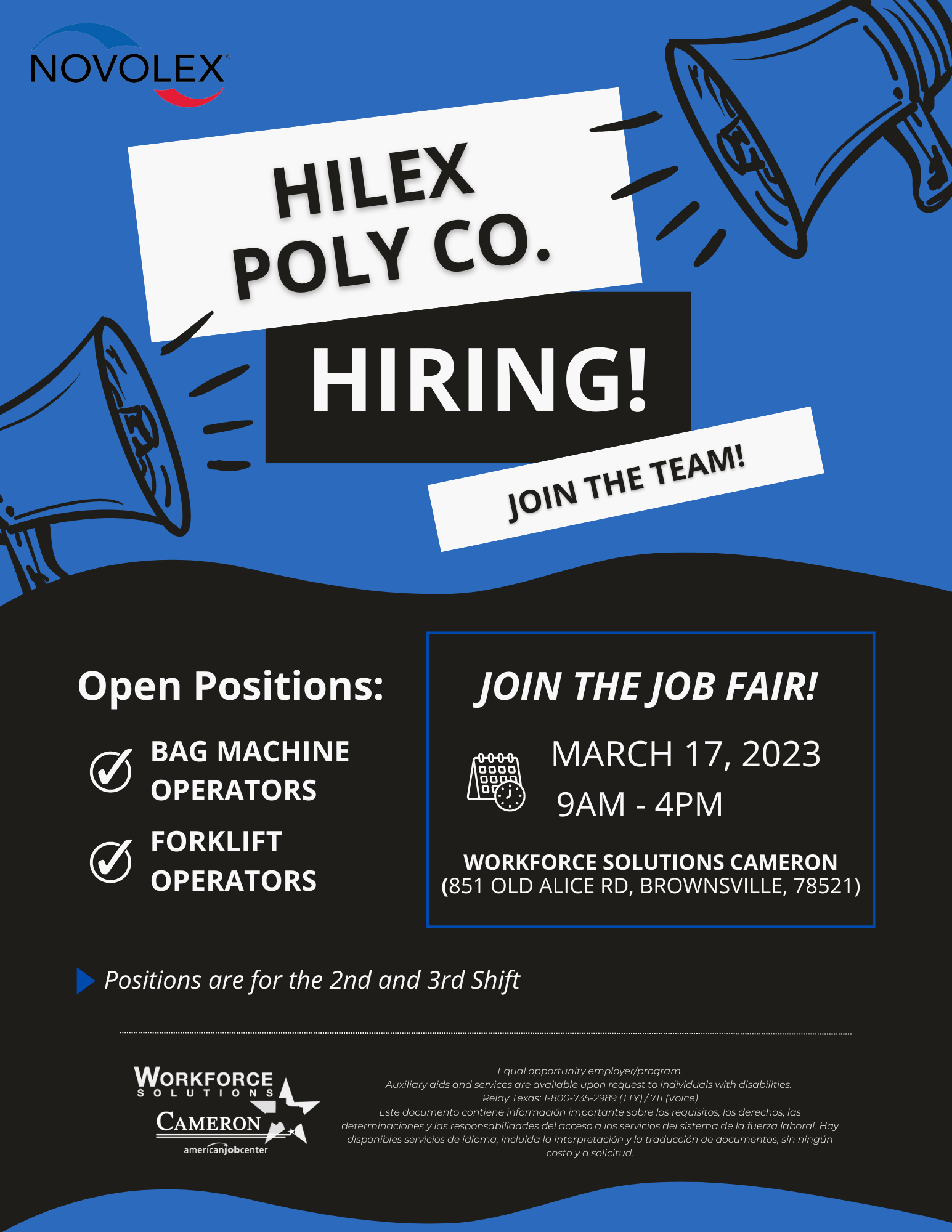 Looking for a job in the manufacturing industry? Hilex Poly Novolex is hiring! Don’t miss the job fair happening from 9AM to 4PM, March 17th, at Workforce Solutions Cameron in Brownsville.