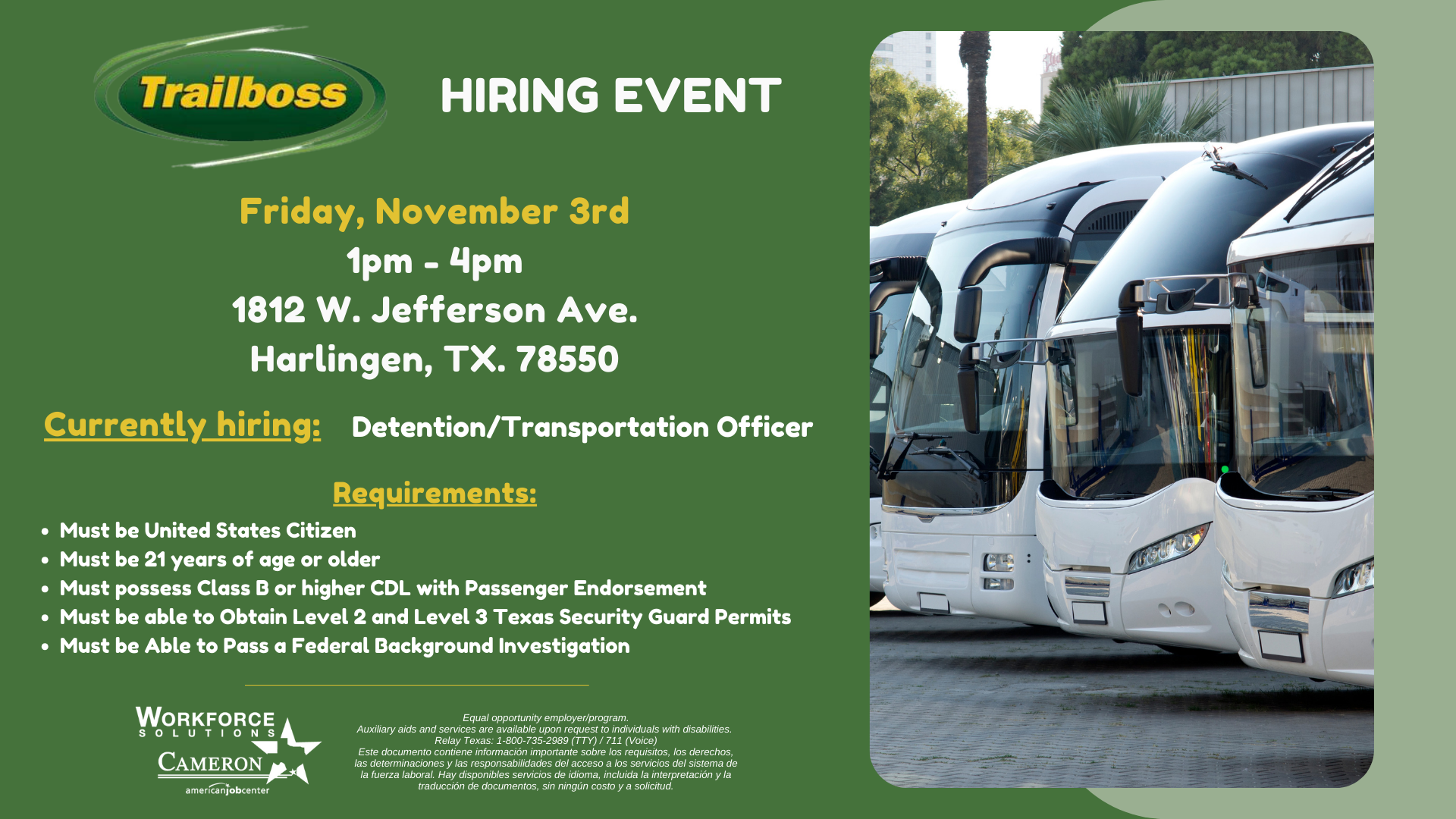 They’ll be at our WFS Cameron office in Harlingen (1812 W. Jefferson Ave.) on Friday, November 3rd from 1pm – 4pm!