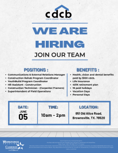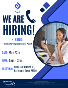 Special Note: As a person with a disability, as defined under the Americans with Disabilities Act (ADA), you have the right to access all services, programs and activities provided at our Workforce Centers.Workforce Solutions Cameron is an equal opportunity employer/program. Auxiliary aids and services are available upon request to individuals with disabilities.